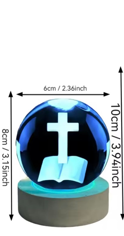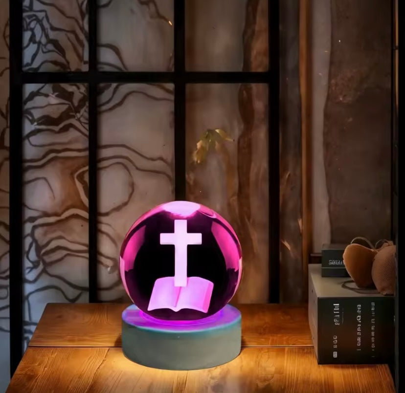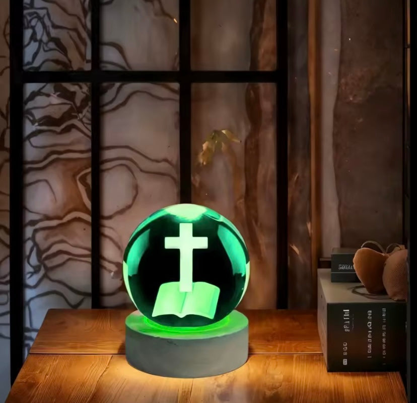 Elke bol bevat een zorgvuldig laser-gesneden christelijk symbool, dat in het glas zweeft alsof het door God zelf verlicht wordt. Het is niet zomaar een decoratie, maar een spirituele herinnering aan hoop, liefde en geloof, perfect om rust en licht in huis te brengen.