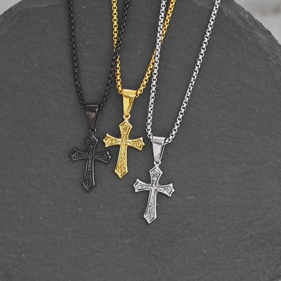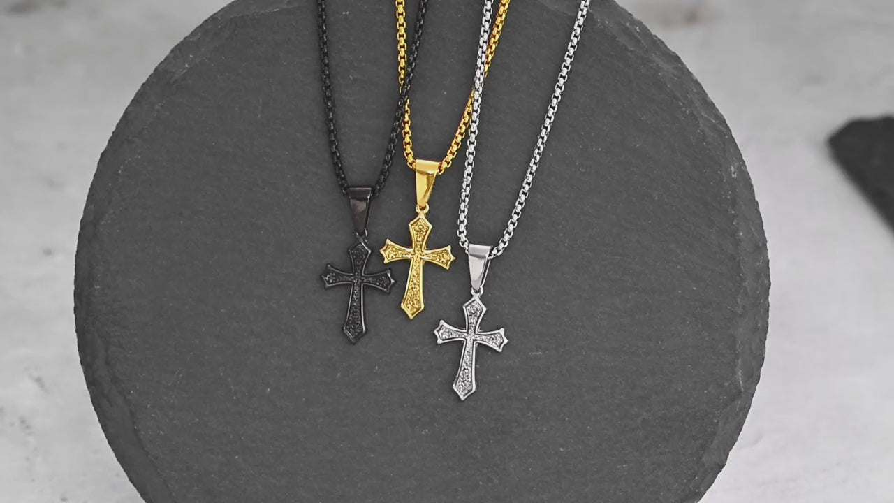 Een elegante kruisketting voor zowel mannen als vrouwen, gemaakt van hoogwaardig roestvrij staal. Deze christelijke ketting combineert een klassieke, chique uitstraling met een tijdloos symbool van geloof.