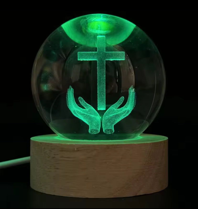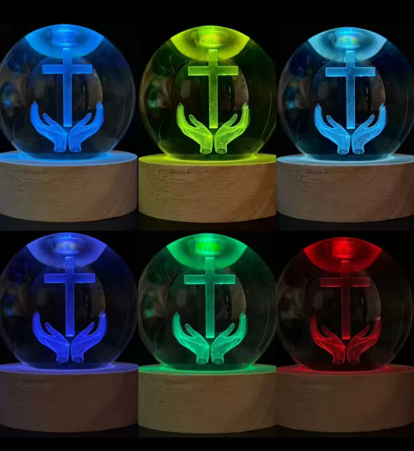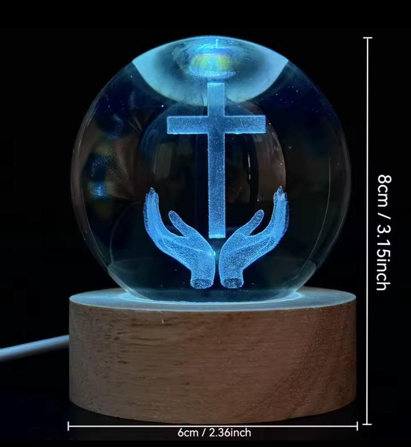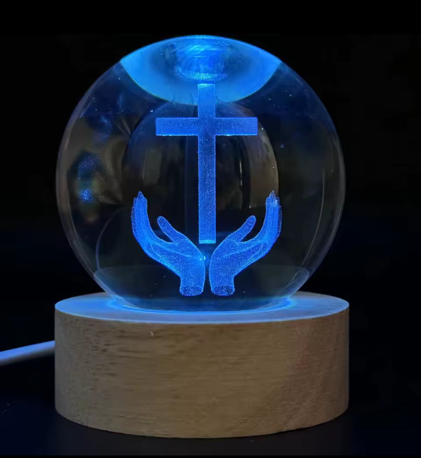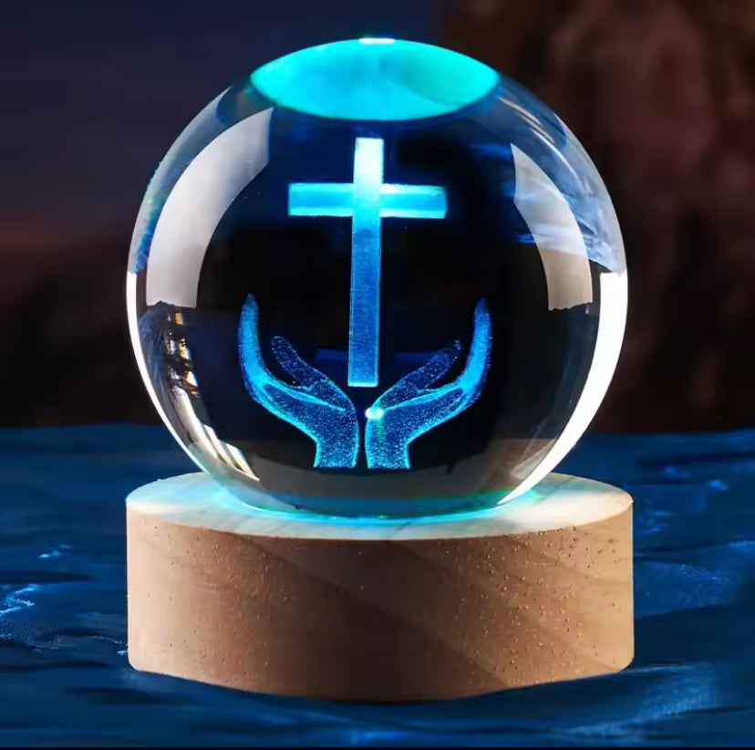 Elke bol bevat een zorgvuldig laser-gesneden christelijk symbool, dat in het glas zweeft alsof het door God zelf verlicht wordt. Het is niet zomaar een decoratie, maar een spirituele herinnering aan hoop, liefde en geloof, perfect om rust en licht in huis te brengen.