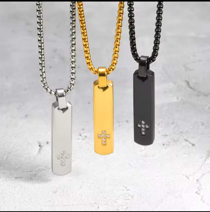 Deze verticale ketting is een stijlvol en tijdloos sieraad dat geloof en elegantie combineert. Gemaakt van hoogwaardig roestvrij staal, hypoallergeen en duurzaam – perfect om elke dag te dragen zonder zorgen.