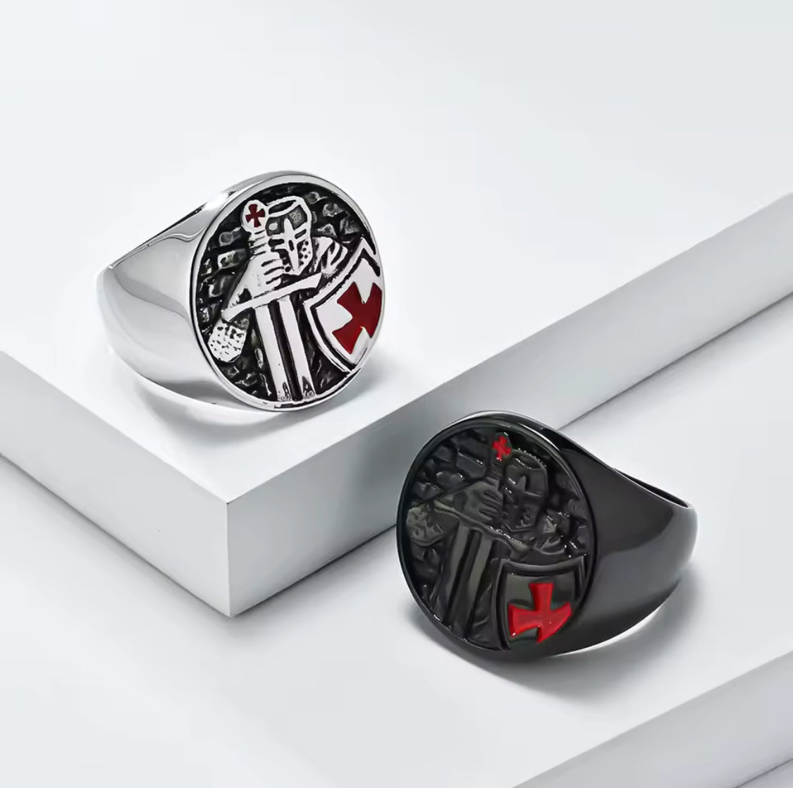 Draag de kracht en geschiedenis van de ridderorde met deze heren Tempelierskruisschildring, een indrukwekkend sieraad dat stoerheid en spiritualiteit combineert. De ring is gemaakt van hoogwaardig roestvrij staal, voorzien van een 18K goudlaag, en valt direct op dankzij zijn royale 22 mm brede schildvorm. Het Tempelierskruis – een krachtig historisch symbool – staat centraal en benadrukt moed, geloof en eer.