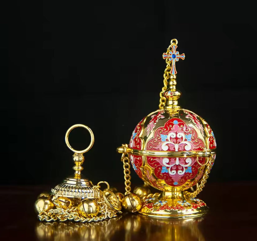 Deze HTISOK wierookbrandermet is een prachtig en functioneel stuk dat traditie en elegantie combineert. Vervaardigd uit verzinkt metaal, biedt het duurzaamheid en een tijdloze uitstraling. Perfect geschikt als kerkdecoratie, voor luchtzuivering of als betekenisvol religieus cadeau.
