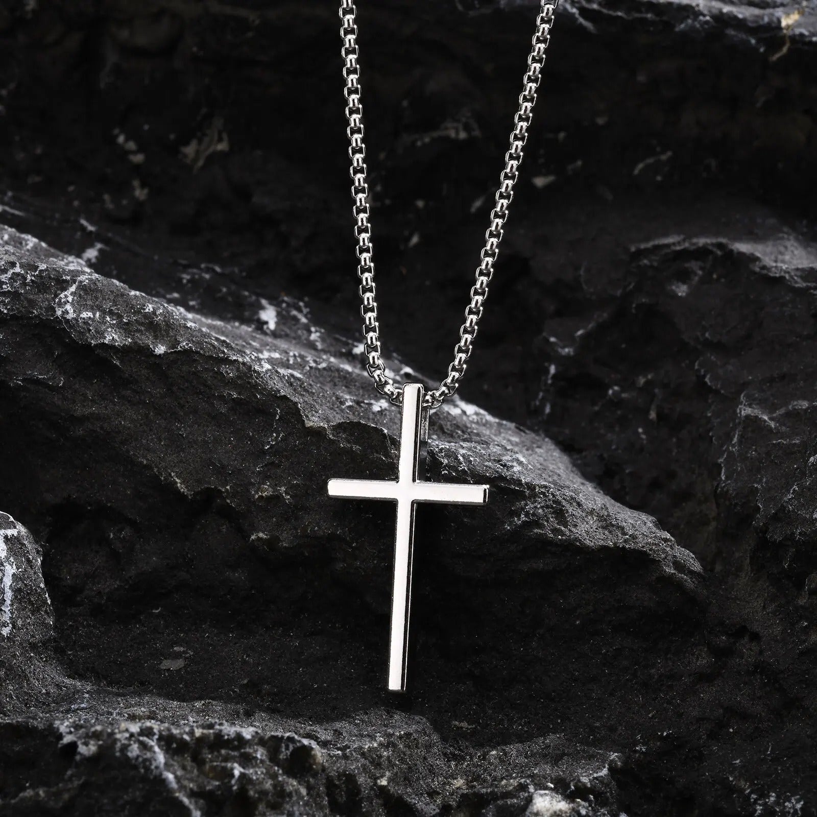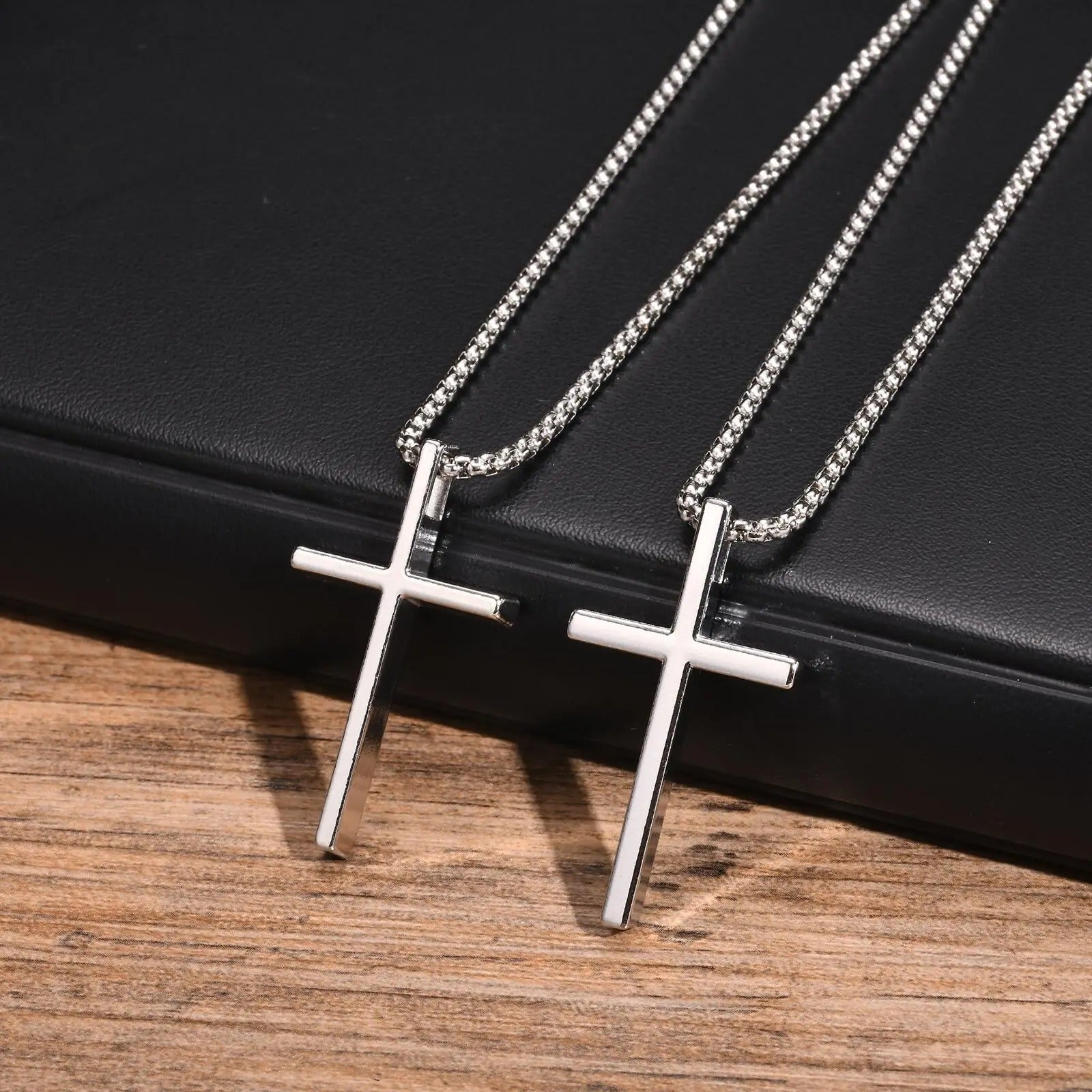 Een stijlvolle zilverkleurige kruisketting voor mannen met een effen kruishanger van 24 x 42 mm. Deze trendy ketting combineert een stoere uitstraling met een betekenisvol symbool van geloof.