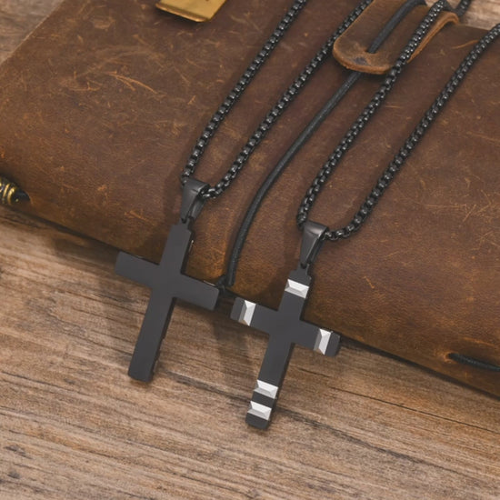 Zwarte roestvrijstalen kruisketting met gedurfd design